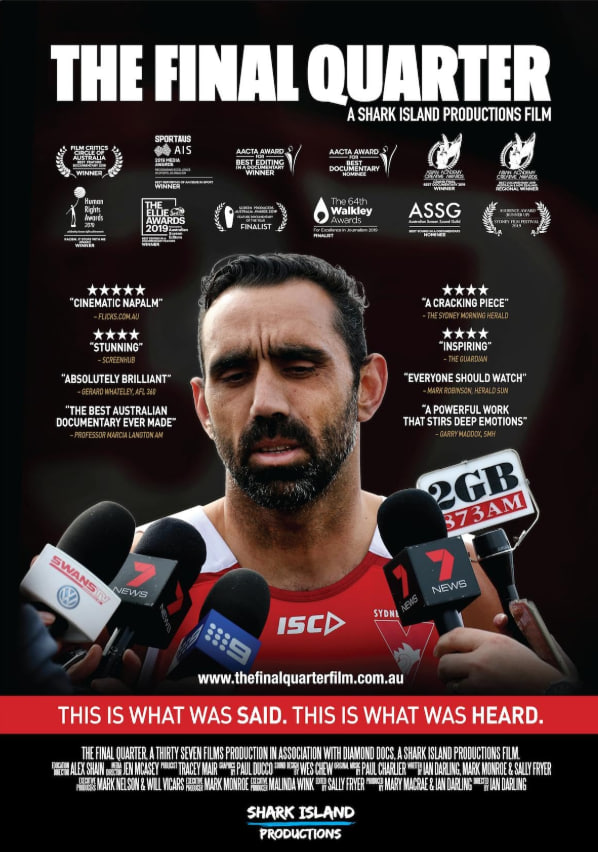 亚当·古德斯曾是澳式足球联赛(AFL)冠军球员和原住民领袖。在他职业生涯的最后几年,欢呼声变成了嘘声。这部影片仅使用档案片段,揭示了引发媒体激烈评论、导致国家分裂的事件。影片将于2019年上映。