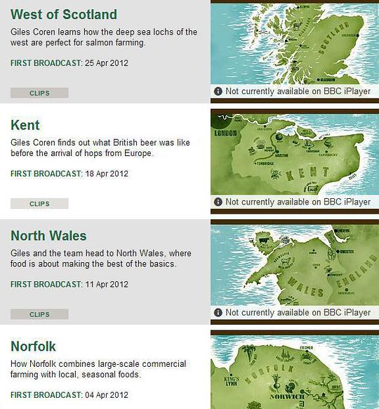 本剧介绍英国的食物来源,在North Wales,West of Scotland,Norfolk,Kent,四个主要地区进行美食的探索