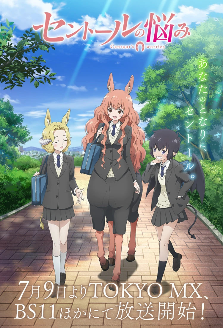 君原姬乃(深川芹亚 配音)是一个个性十分温柔和蔼的平凡高中女孩,然而,和其他女高中生不一样的是,姬乃是拥有一半人类身体和一半马的身体的半人马族。虽然过着和普通人类一样的生活,但实际上,姬乃对自己独特而又庞大的体型十分的在意和苦恼。大大咧咧开朗活泼的龙人狱乐希(桑原由气 配音)、成熟稳重总在关键时刻扮演军师角色的角人名乐羌子(白石晴香 配音)、天生就拥有着领导的气魄的翼人御魂真奈美(镰仓有那 配音)、理性沉稳的南极蛇人萨斯萨斯索(绫濑悠 配音),这些半兽人们都是姬乃的同班同学,每天,她们都聚在一起,过着充满了快乐的校园生活。
