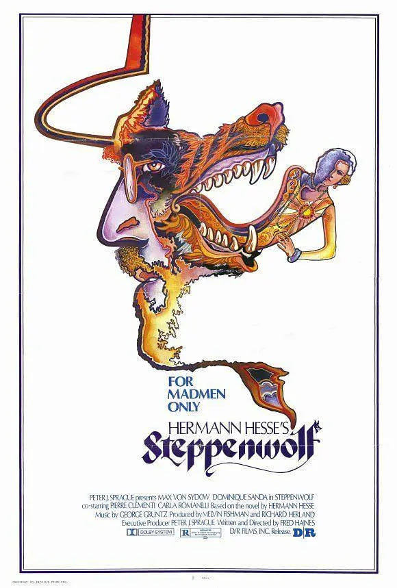 哈勒尔(马克斯·冯·叙多夫 Max von Sydow 饰)是一名作家,愤世嫉俗的他非常看不惯当代社会的很多生活习惯,无法融入社会的他常常把自己锁在家中闭门不出,在孤独和黑暗里,哈勒尔的精神来到了崩溃的边缘。一天,在机缘巧合之下,哈勒尔读了一本名叫《评荒原狼》的书,书中所写的内容令他醍醐灌顶,他觉得这本书简直就是为了他量身定制的。一次偶然中,哈勒尔解释了酒吧女郎赫尔米娜,在她的介绍之下,又认识了音乐人帕布洛和女孩玛利亚(多米妮克·桑达 Dominique Sanda 饰)。当哈勒尔发现赫尔米娜和帕布洛有一腿后,嫉妒的趋势之下,失去理智的哈勒尔杀死了赫尔米娜。