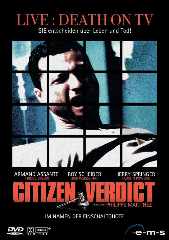 馬提洛克曼(Jerry Springer)因製作電視實境秀「告我啊」一炮而紅,滿腦鬼點子的他有了一個新的節目構想:「全民判決」。他打算在每一週推出一個真正的罪犯在美國大眾前接受審判,而每個民眾都是陪審團。如果被告被判死刑,洛克曼將轉播行刑典禮。在暴行和恐怖主義肆虐的佛羅里達州,州長泰勒(Raffaello Degruttola)為了在即將到來的選舉中塑造自己打擊罪犯的鐵腕形象,同意洛克曼在坦帕製作「公民判決」,觀眾將用電話來進行判決。第一集的主角是涉嫌強暴並謀殺名廚桃莉漢彌頓的瑞克卡爾(Roy Scheider)。瑞克有罪的投票判決幾乎是無庸置疑的,然而當調查開始,卻有越來越多的證據顯示他可能是無辜的……