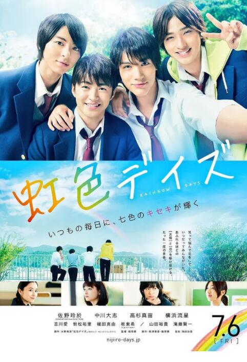 水野美波的人气少女漫画《虹色时光》(虹色days)真人化,佐野玲於、中川大志、高杉真宙、横浜流星主演。漫画描绘了没有参加任何社团的四位男高中生的友情、恋爱生活。影片由饭塚健([荒川爆笑团 ])导演,预...