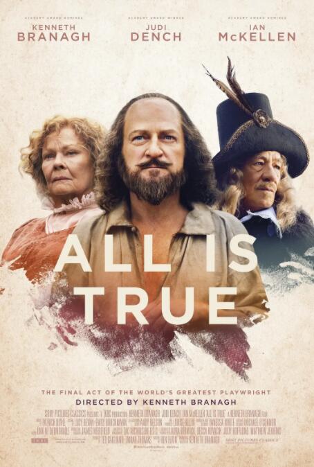 索尼经典拿下莎士比亚历史剧情片《都是真的》(All Is True)的全球版权,肯尼斯·布拉纳执导并与朱迪·丹奇、伊恩·麦克莱恩主演。该片将于12月21日在纽约和洛杉矶上映一周,确保能参与颁奖季角逐,明年正式上映。 设定在1613年,莎士比亚被公认为是最伟大的作家,但在他著名的环球剧场被夷为平地后,被压垮的莎士比亚回到了斯特拉特福德,他必须面对一个麻烦的过去和一个被忽视的家庭。他唯一的儿子哈姆内特去世,他挣扎着修补与妻子和女儿破碎的关系,被迫审视自己作为丈夫和父亲的失败,他对真相的个人探索揭示了家庭内部的秘密和谎言。