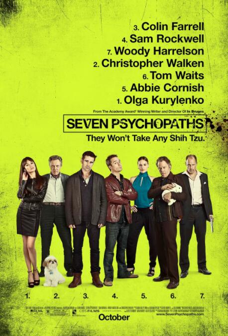 Marty(柯林·法瑞尔 Colin Farrell 饰)是一个爱喝酒的电影编剧,他的好友Billy(山姆·洛克威尔 Sam Rockwell 饰)则和Hans(克里斯托弗·沃肯 Christopher Walken饰)靠偷狗然后把狗还回给失主来赚钱。Marty近期在写 一个叫《七个神经病》的剧本,却没有什么灵感,于是Billy给他提供了一些素材。有一个神经病是一个杀手,每次杀完人都会扔下一张J扑克牌,有一个越南的复仇者,有一个自刎的贵格教徒....Billy偷了一条狗,这条狗是一个黑帮老大Charlie(伍迪·哈里森 Woody Harrelson 饰)的爱犬。Charlie丢了他视如生命的狗,到处在寻找。他找到了Hans住院的妻子并杀害了她。Billy知道这件事后,愤怒的将他的情人杀害,而她也是Charlie的情人,随后Billy扔下了一张扑克牌。原来Billy就是那个神经病杀手。他和Marty、Hans来到野外继续写剧本,同时他也让Charlie单枪匹马前来决斗.....