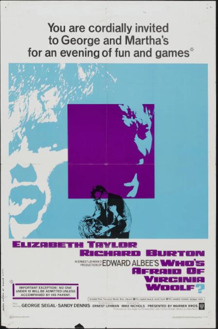 乔治(理查德·伯顿 Richard Burton 饰)是一名历史系的教授,而他的妻子玛莎(伊丽莎白·泰勒 Elizabeth Taylor 饰)则是校长的女儿,两人结婚多年,感情早已经由浓转淡。不仅如此,身份上的不平等亦为这段婚姻埋下了重重的隐患。 某夜,两人参加完派对后返回家中,疲惫不堪的乔治得知伊丽莎白竟然在完全不告知自己的情况下邀请了年轻的夫妻尼克(乔治·席格 George Segal 饰)和哈尼(桑迪·丹尼斯 Sandy Dennis 饰)前来做客。虽然心中有诸多的不满,但乔治还是习惯性的将它们压抑在了心底。年轻而又英俊的尼克吸引了玛莎的注意,看着妻子向尼克大献殷勤,乔治的心中很不是滋味,一场暴风雨正在酝酿之中。