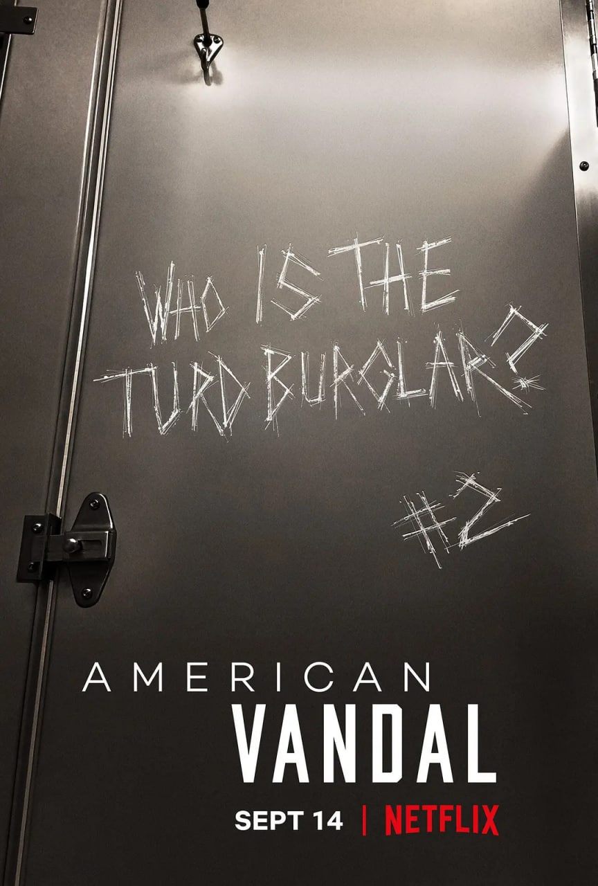 Netflix的伪纪录片剧《美国囧案 American Vandal》第二季确定在美国时间9月14日上线,这部获艾美奖提名及赢得皮博迪奖的剧集新季讲述,纪录片工作者Peter Maldonado及Sam Ecklund(Tyler Alvarez及Griffin Gluck饰演)被招来到一间天主教精英学校,他们将调查一宗引致学校多人腹泻的大型恶作剧事件。而有一匿名帐户「Turd Burglar」承认这次事件的责任,主角们得查出谁是幕后黑手。
