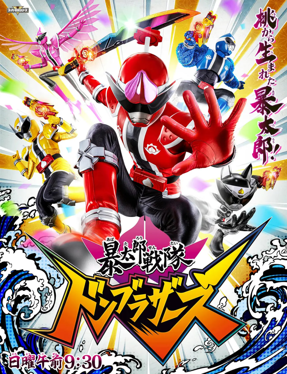 今年呀今年……以《桃太郎》为主题,前所未见的英雄诞生了!就像桃太郎借由犬、猿、雉的帮助打倒鬼般,DON桃太郎(红),率领了猿BROTHER(蓝)、犬BROTHER(黑)、雉BROTHER(粉)、以及鬼SISTER(黄)对抗邪恶。其名为‘暴太郎战队DON BROTHERS’!外貌及团队精神参差不齐的一群战士。以搭载化身资料=暴太郎战斗的5人,使用暴太郎齿轮化身变身成为 DON BROTHERS!另外能变身成历代超级战队战士的姿态。他们从由内心产生欲望的人类所变成的怪物‘人鬼’以及,将人鬼从人类世界抹除的谜之组织‘脑人’手中,守护人类。……但这一切,还差得远呢。某日,突然得到英雄之力的女高中生·鬼头遥,在接受了神秘男·桃井阵的指令委托后开始引动了这个世界!“你是有伙伴的。首先你得找到‘桃井太郎’! 然后向其宣示效忠!”桃井太郎到底是谁……? 我的伙伴又是谁……?DON BROTHERS的故事就此开幕!来呀〜祭典开始啰!